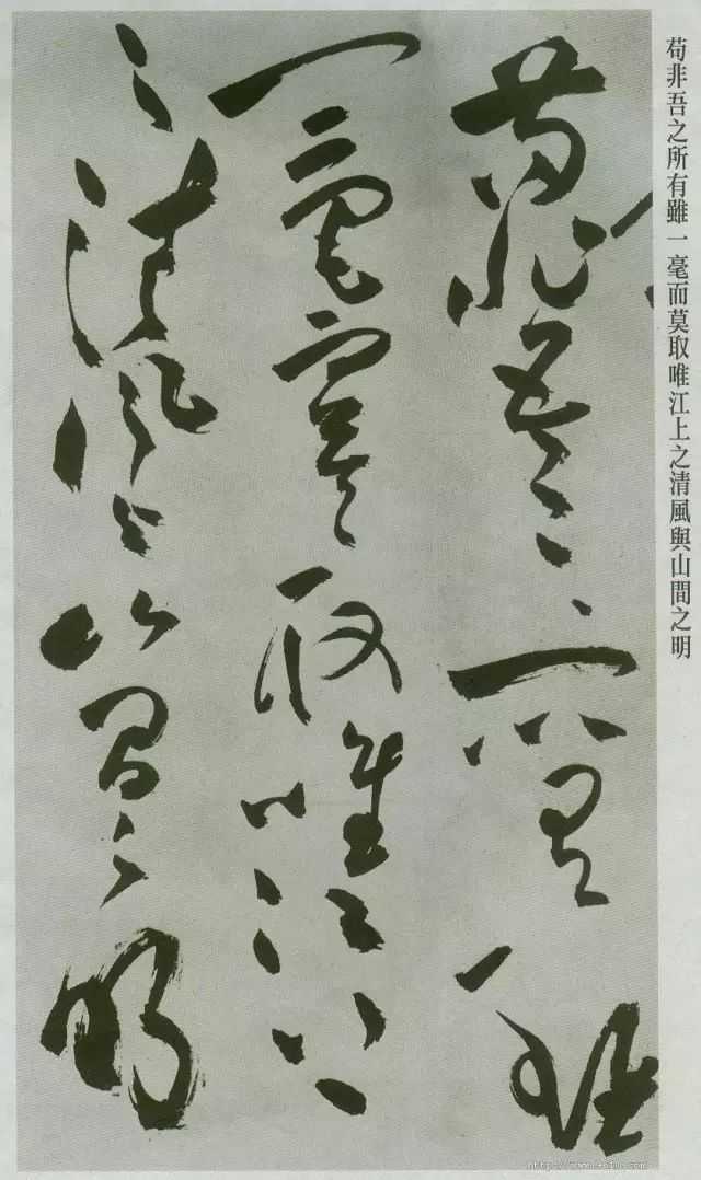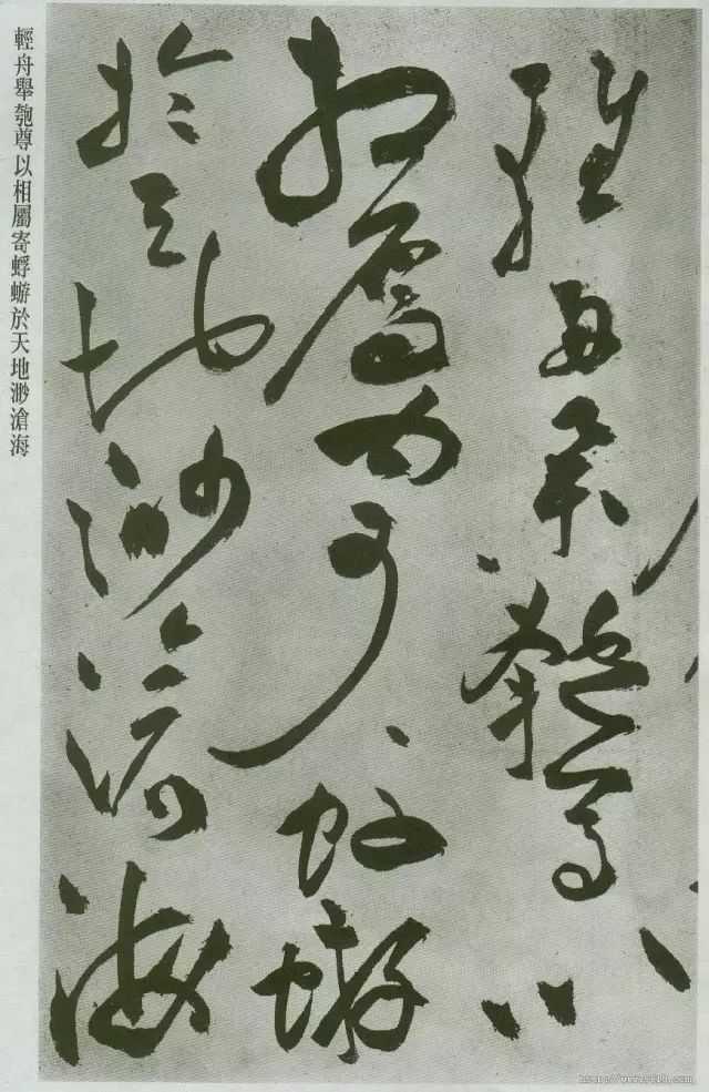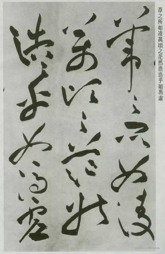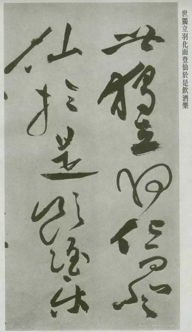 大约从东晋时代开始,为了跟当时的新体草书相区别。把汉代的草书称作章草。新体草书相对而言称作今草,其又分大草(也称狂草)和小草,在狂乱中觉得优美。正如李志敏所说:“临于池,酌于理,师于物,得于心,悟于象,然后始入草书妙境。”