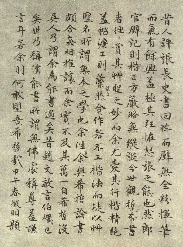 此卷书宋苏轼前后《赤壁赋》,为明代中期狂草书法的经典之作。笔势雄强,纵而不散,逸而能收;笔法刚健,蕴涵丰润,取法诸家。既有“二王”的遒爽,怀素、张旭的豪纵,又有“宋四家”的潇洒和劲峭,更多自己的面貌跃然纸上。系用金粟山藏经纸书写。时值弘治十五年(1502),作者年四十三。卷后有近人李瑞清题签,明黄省曾、文徵明、文嘉、文从简、文震亨,近人罗振玉等题跋。曾为明汪西山、虞卿收藏。