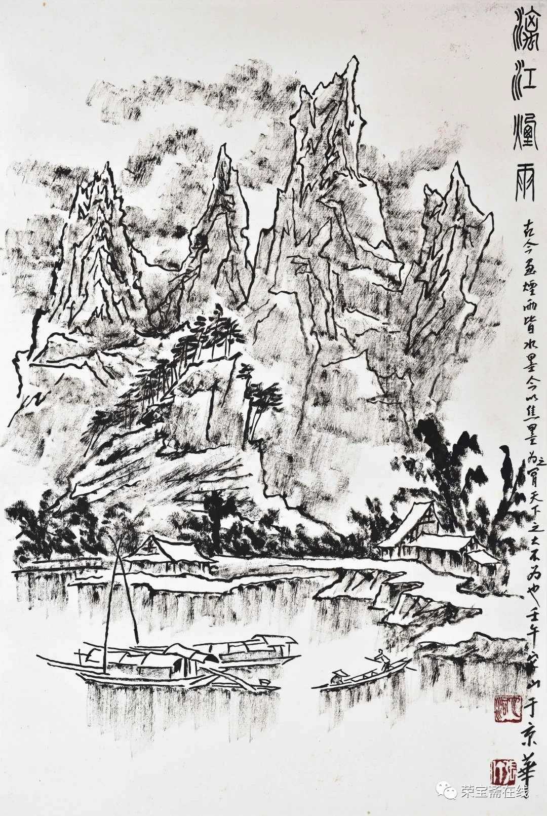 《漓江烟雨》45.8壬午(2002年)作水墨纸本尺寸:45.8