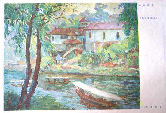 蔡威廉的作品,目前得知的原作现存信息有限,但是当年她作品的曝光率还是很高的、她比较喜欢用立体主义构成的方法来表现西湖水景,当然蔡威廉也画静物和肖像,构成性都比较强烈,可见国立艺专比较倡导立体主义的实践性。