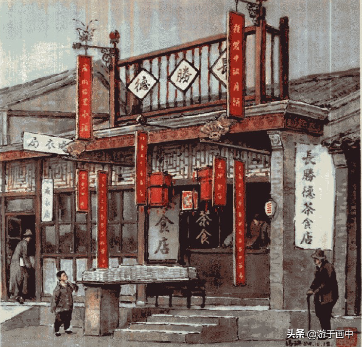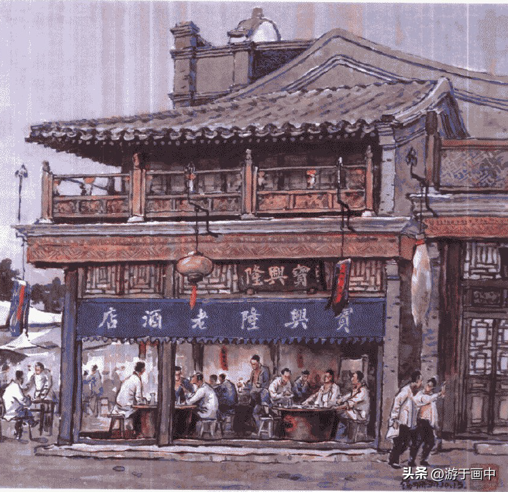 盛锡珊绘店堂楼苑之一:食在京城丰俭由君