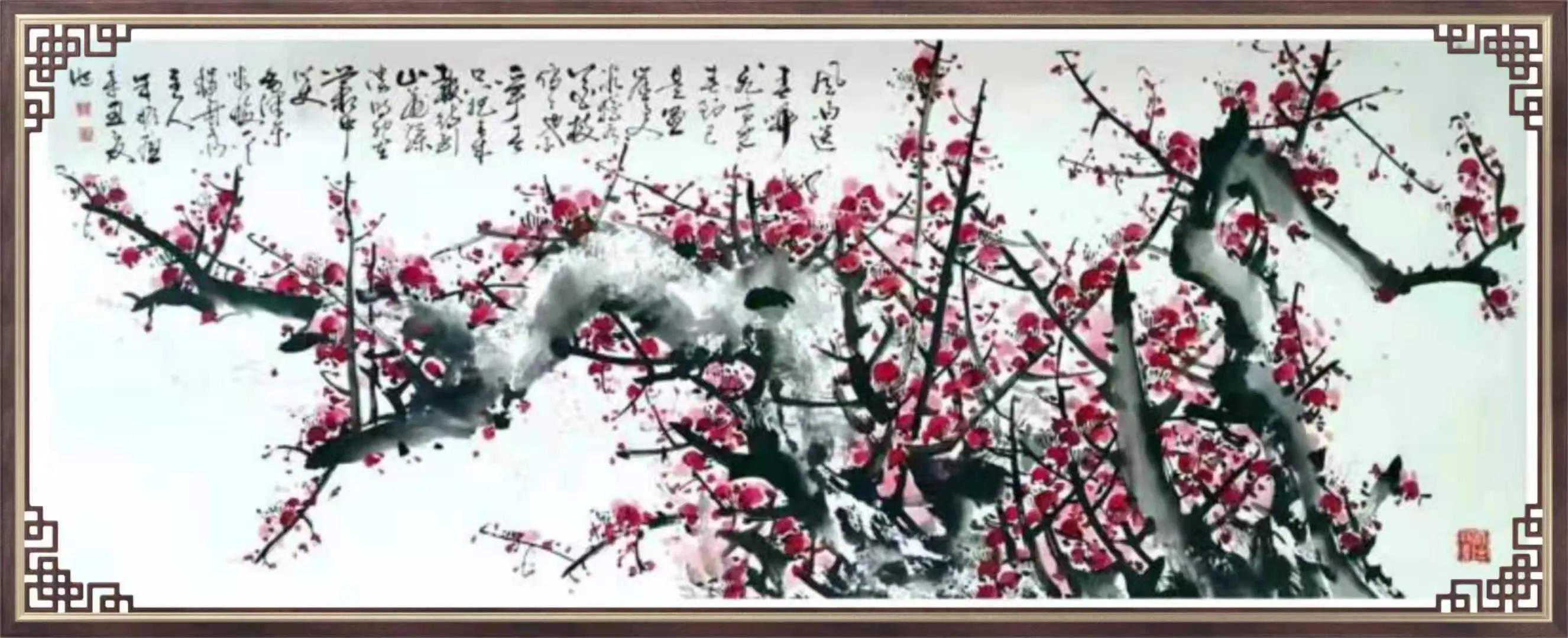 梅花美,却把美留给了洁白无瑕的天地;梅花香,却又有谁知道“梅花香自苦寒来”的艰难;梅花俏,却“俏也不争春,只把春来报;梅花傲,傲雪斗霜、不怕困难、谦虚乐观,以一抹余红换来春满天地。一幅幅梅花写意,在朱振启的画笔之下如神来之韵,为人们徐徐打开了一张花卷绽放在人世间。