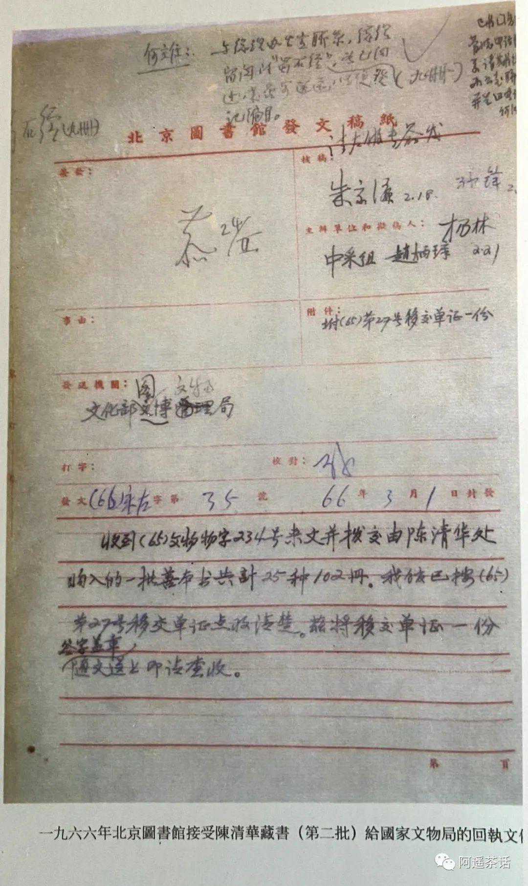 1966年北京图书馆接受陈清华藏书(第二批)给文物局的回执