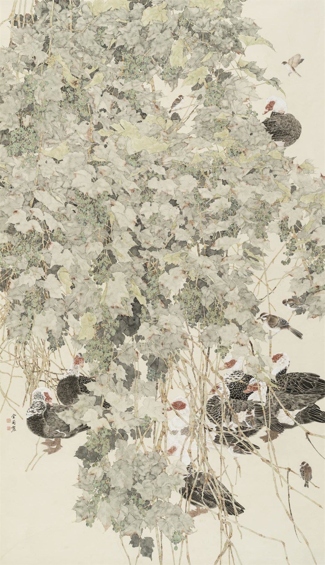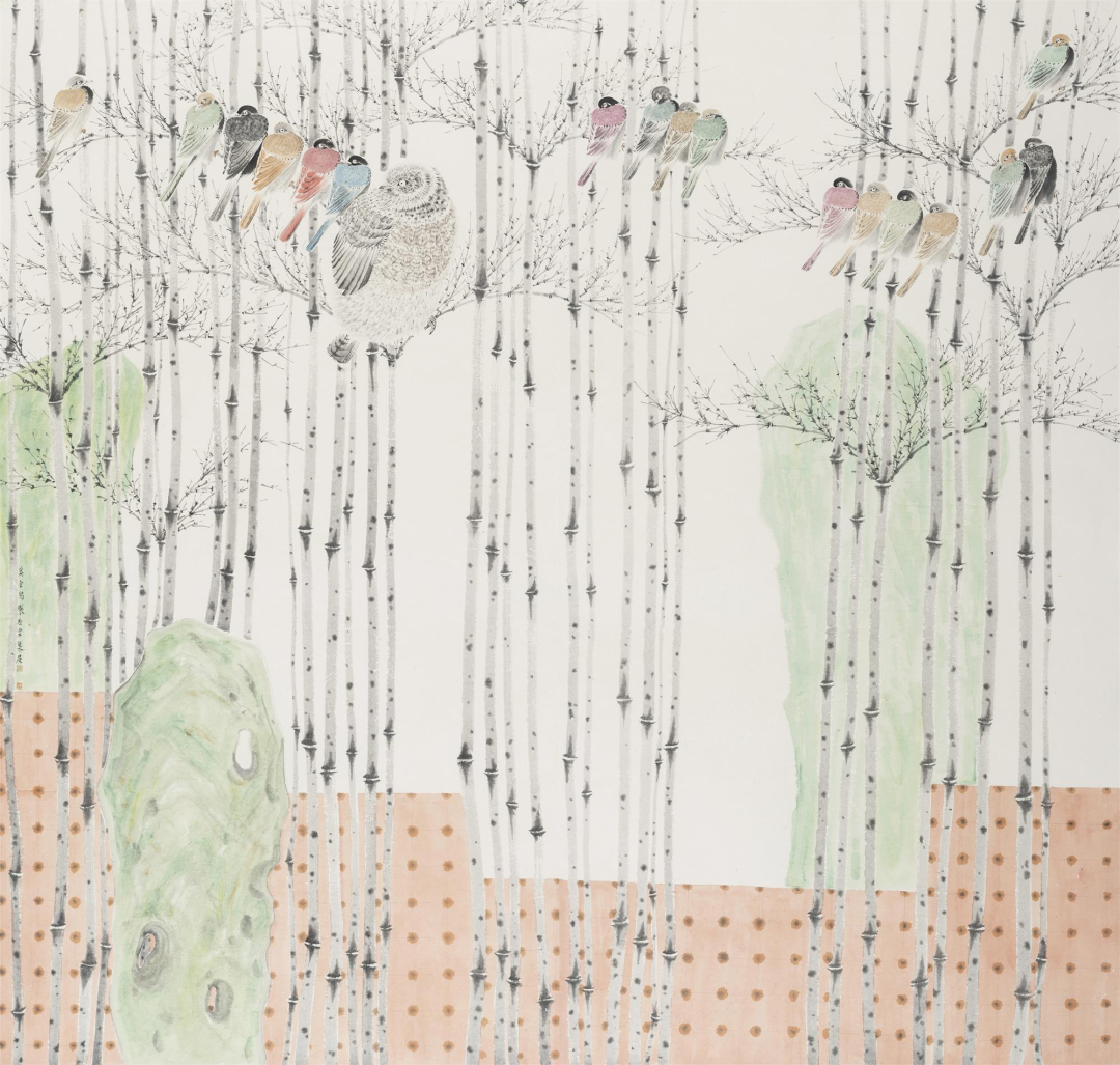 邓海林竹林集禽图240cm×200cm广东