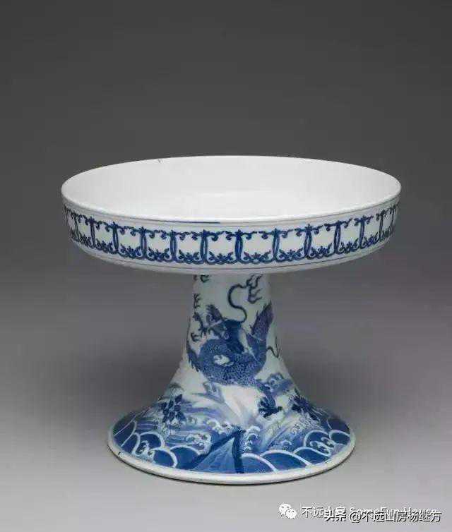 清康熙青花鱼龙变化高足盘·台北故宫博物院藏