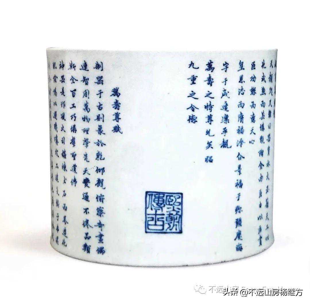 清康熙青花“万寿尊赋”笔筒北京故宫博物院藏