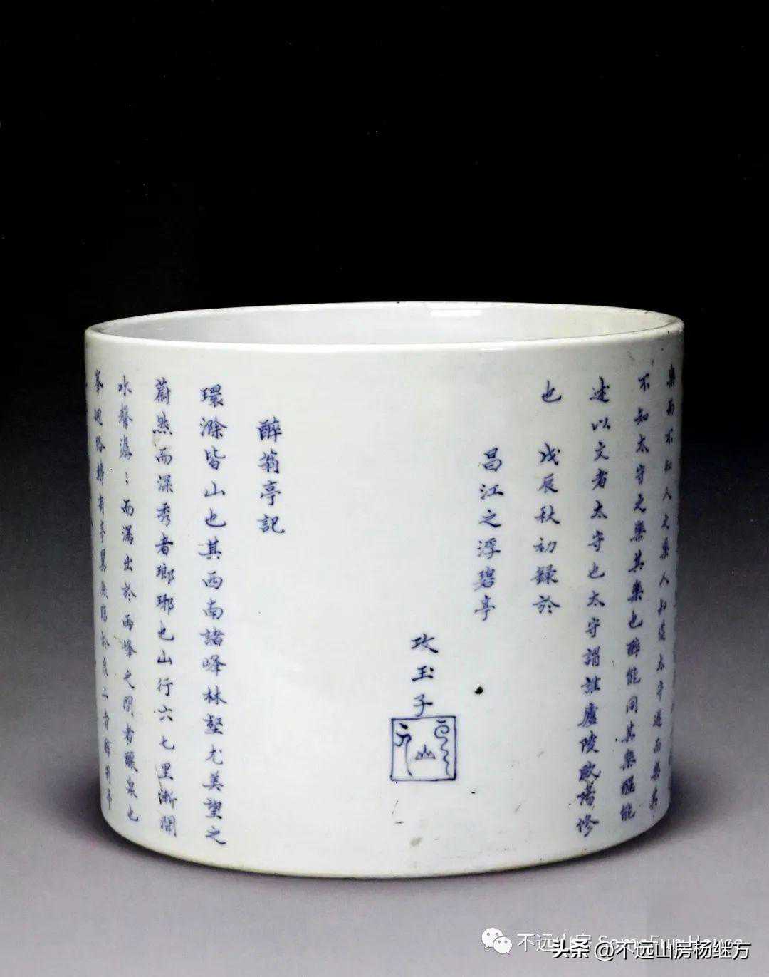 北京翰海2003春的康熙青花醉翁亭记笔筒,有官窑款