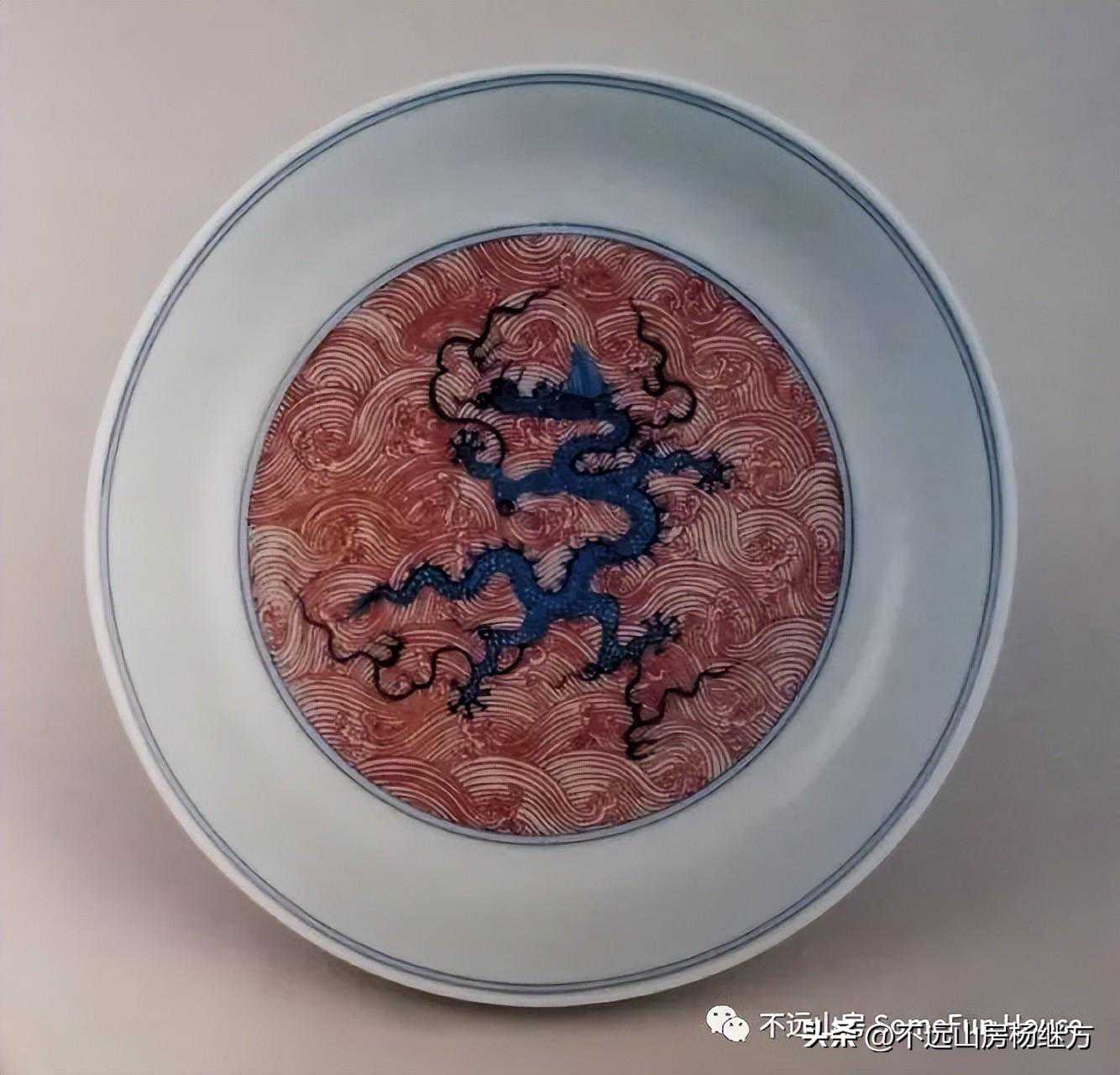 上海博物馆藏康熙官窑青花釉里红海水龙纹瓷盘