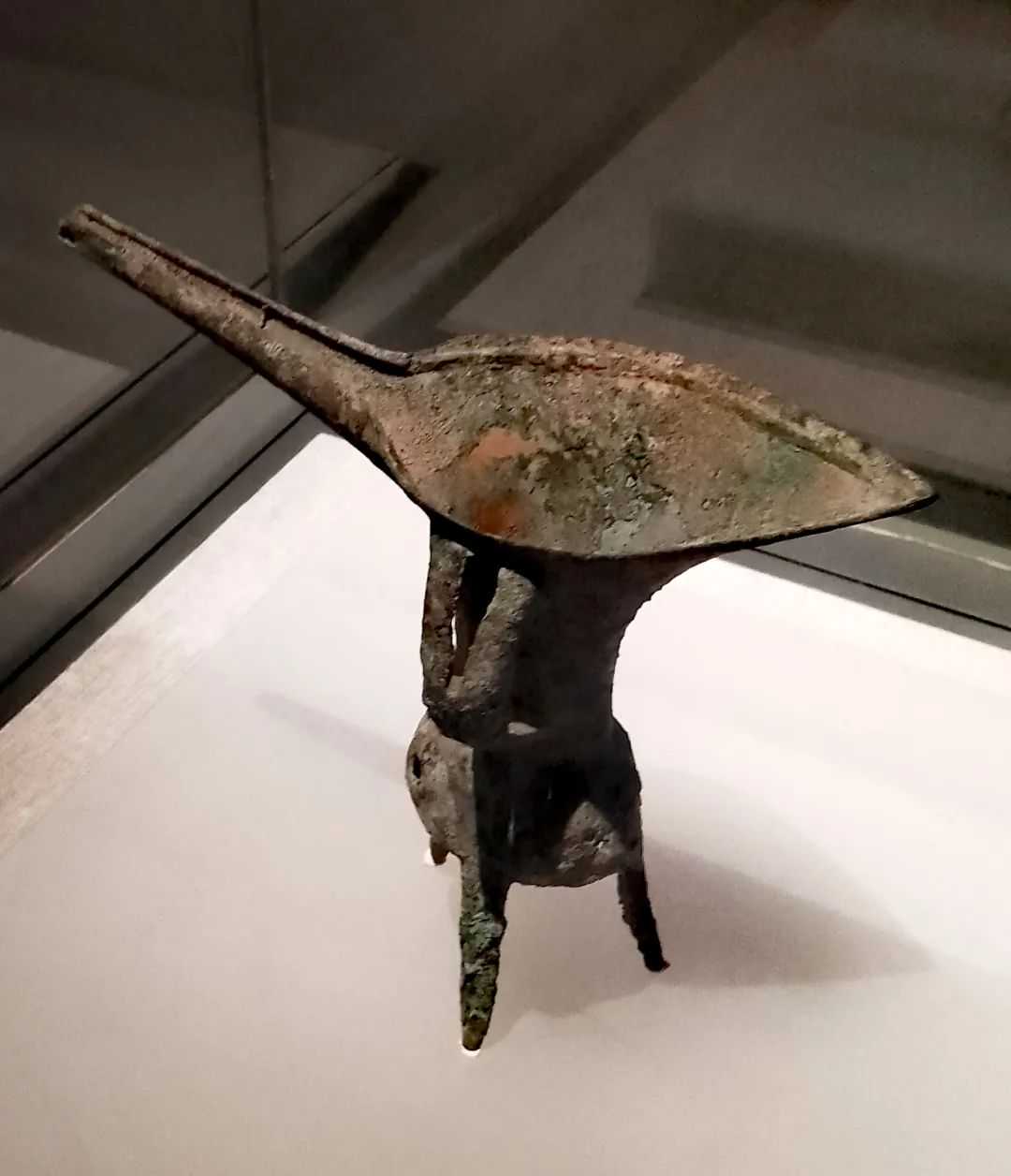 对比上图商代铜爵,可以看出二里头铜爵更像一个婀娜的美女,腰身纤细,下面似乎还穿着蓬蓬裙。