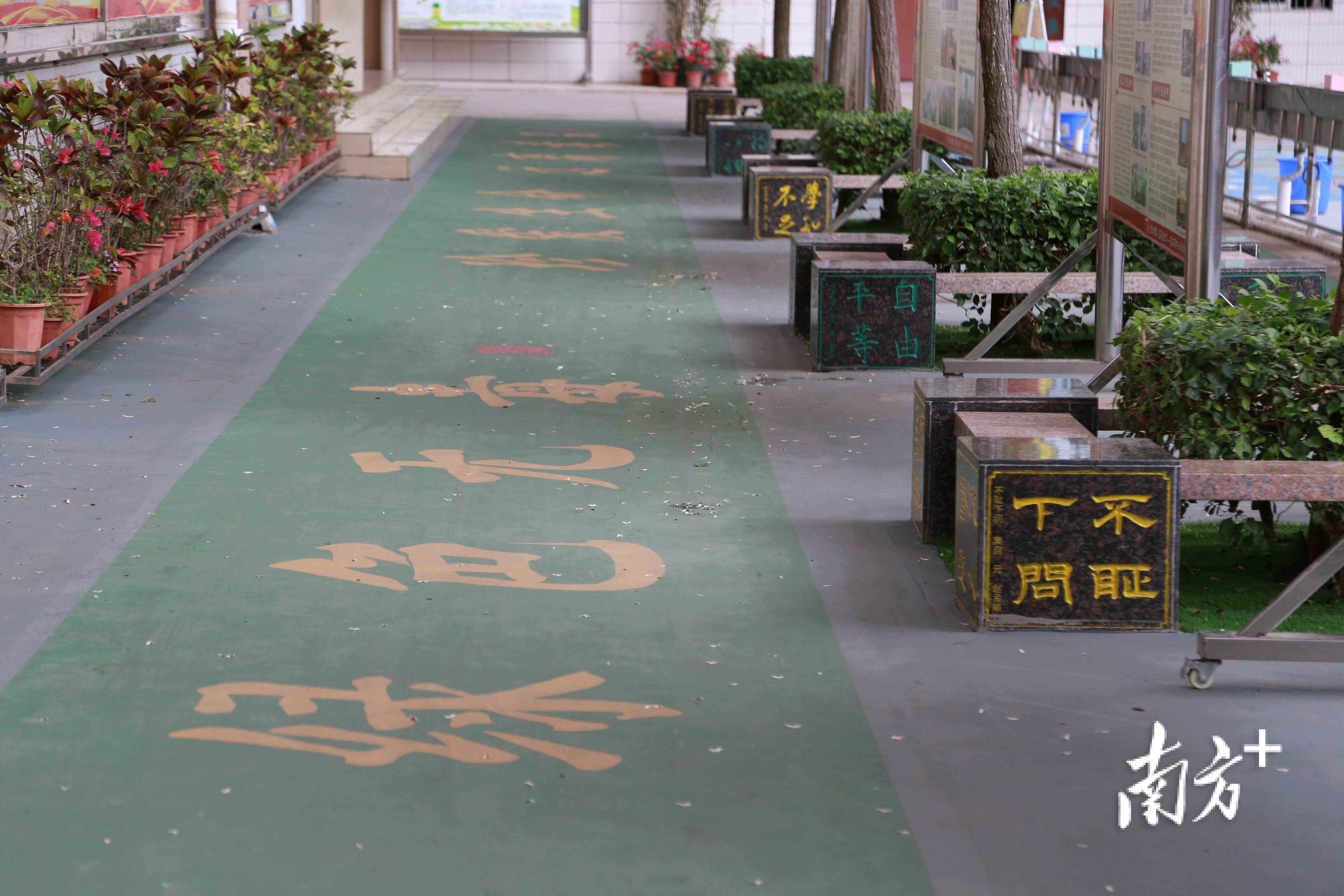 “我们希望能给每一个走过这条通道的学生敲响警钟。”麻章中心小学校长李流平介绍,“禁毒教育已经渗透学校的各个景观和文化阵地,包括‘书法展览厅’‘三品阁’‘硬笔小天地’等。”正因如此,该校形成了以传统文化为基调,以禁毒知识为主题的校园文化氛围。