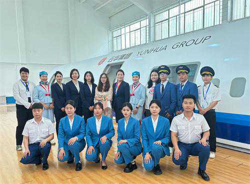 研学师生参观A330双通道宽体客机模拟舱时身着航空制服,东营职业学院航空学院院长徐顺意为他们佩戴领花。空乘专业教师郭林鑫老师为师生们讲解客舱设备、餐车服务、报纸服务及救生衣和氧气面罩的正确使用方法,师生们纷纷加入模拟演练环节,提升了航空安全意识和自我救助能力。