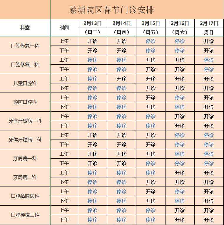 2月10日(初一)至12日(初三):上午开诊、下午停诊