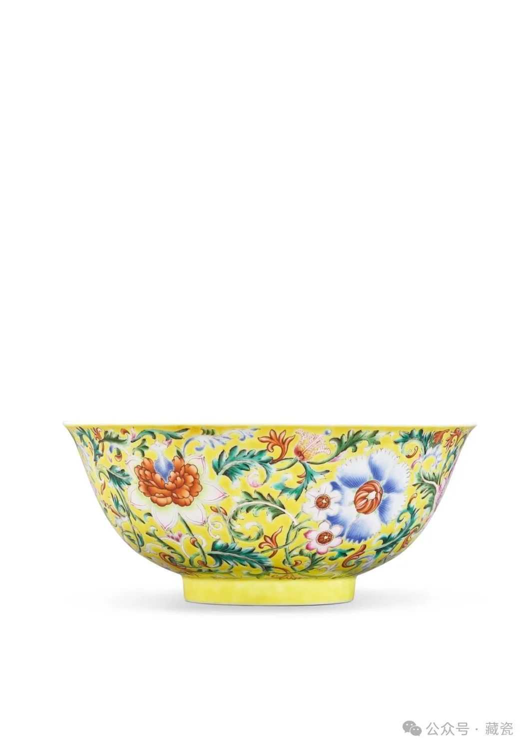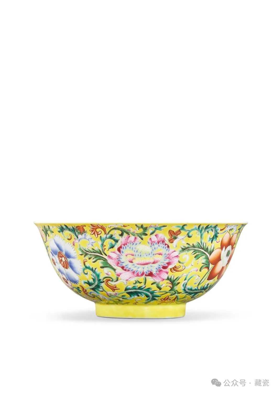 Lot3650清乾隆黄地粉彩洋花内五福宫盌