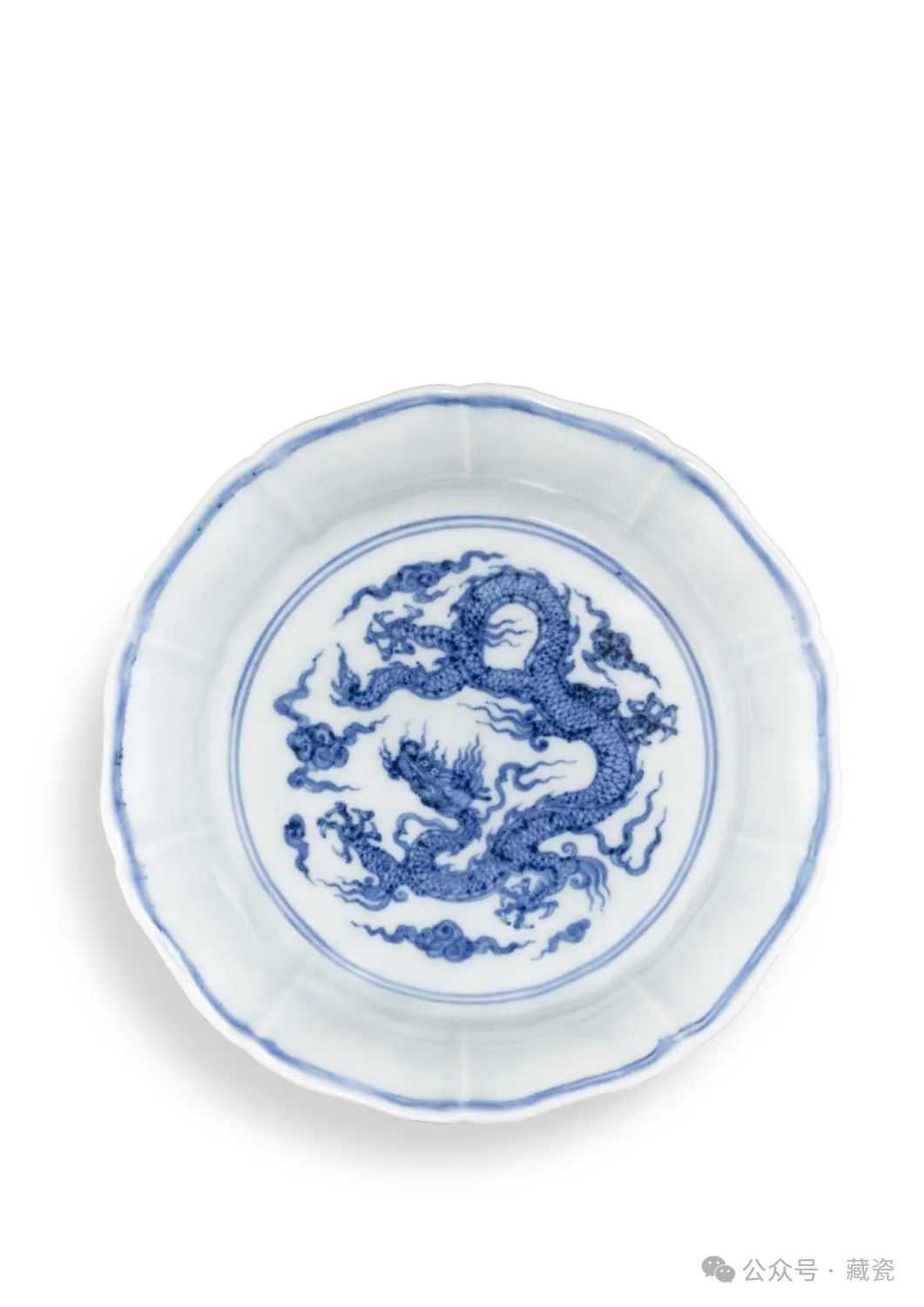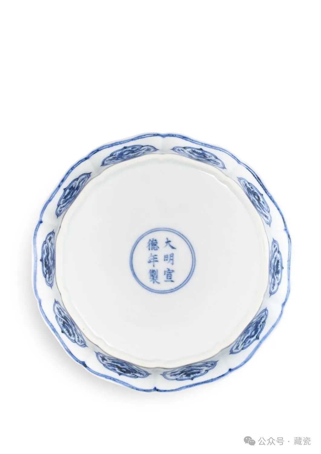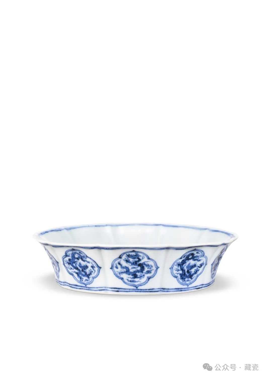 Lot3623明宣德青花云龙纹十瓣葵花式洗