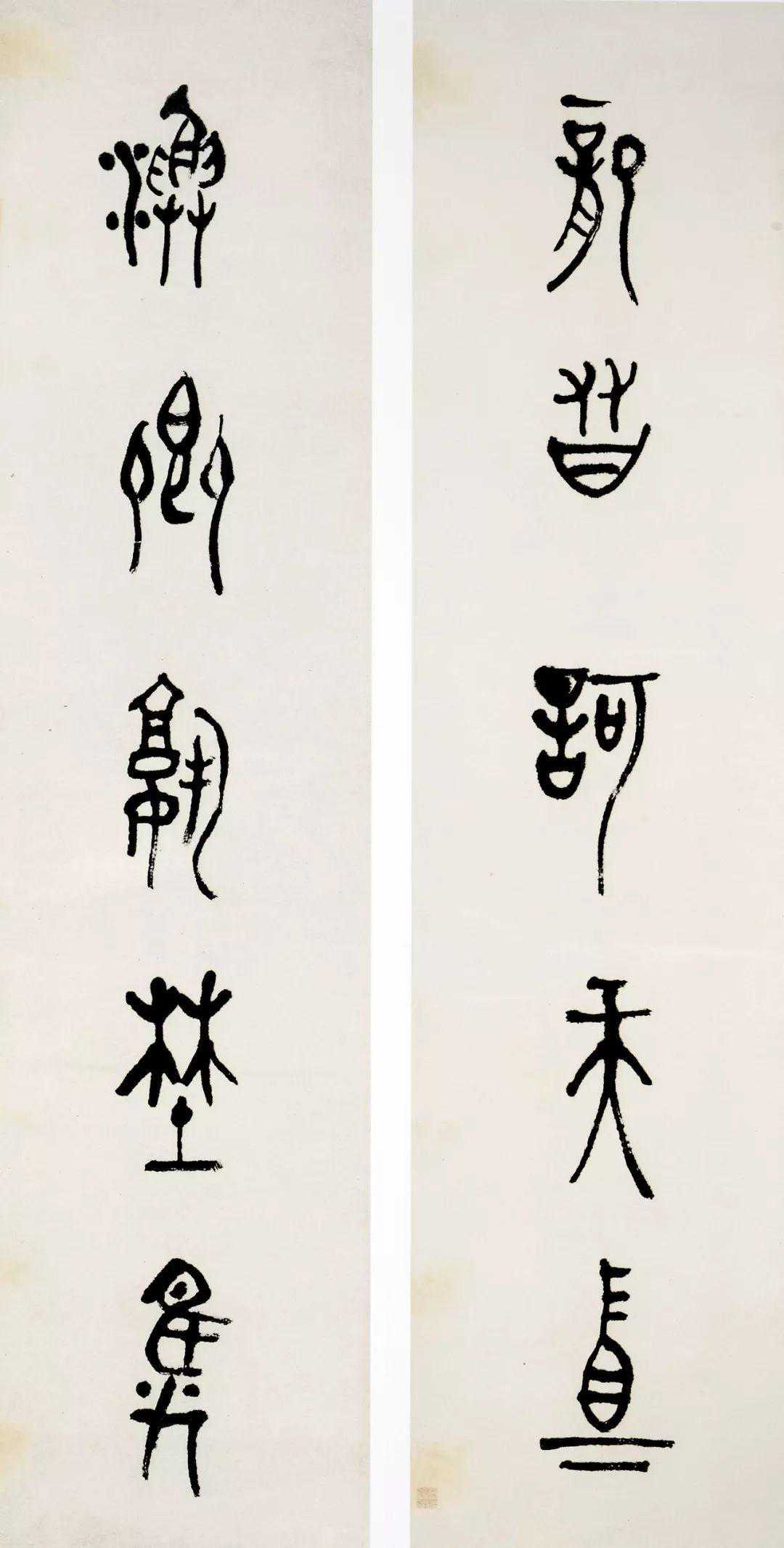 在书法上,他最擅长篆书,他的篆书古拙有力而不失流畅,高远清古而闲然有趣,十分值得玩味。从他的书法作品中,我们可以充分的感受到中国艺术的古典静穆美。