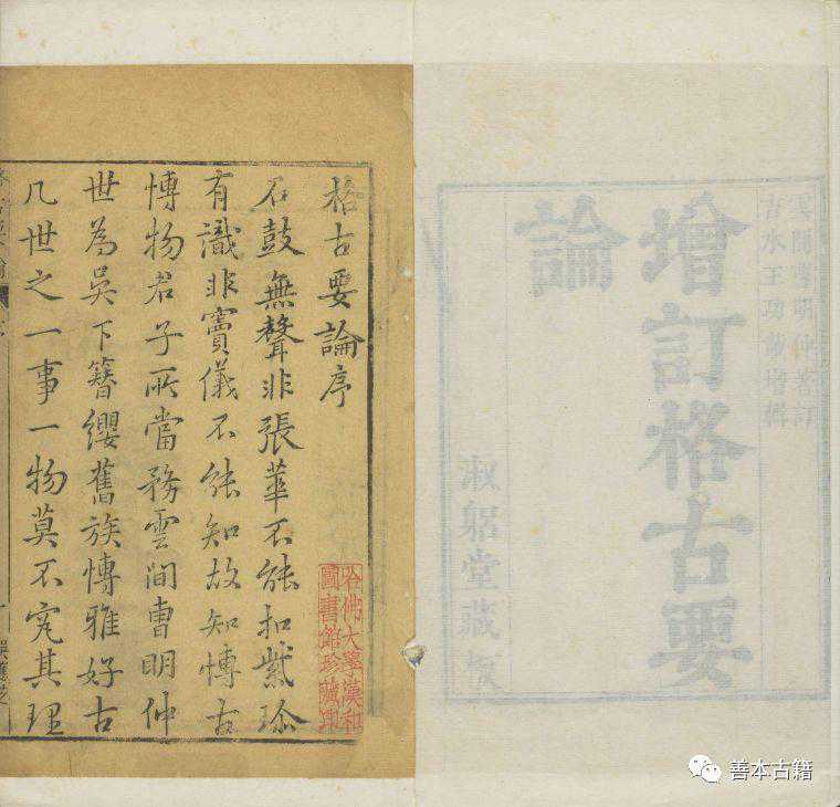 根据《四库全书总目》提要记载,曹昭本是根据衍圣公孔昭焕家藏本编修而来,而孔昭焕家藏本是何版本则没有具体记载,已不可考,但从当时《四库全书》的采纳来看,此本为当时较好的版本。曹昭《格古要论》在《四库全书》中的收录,使此书地位得以提升,也为后世学者贬斥王佐新增本奠定了基础。