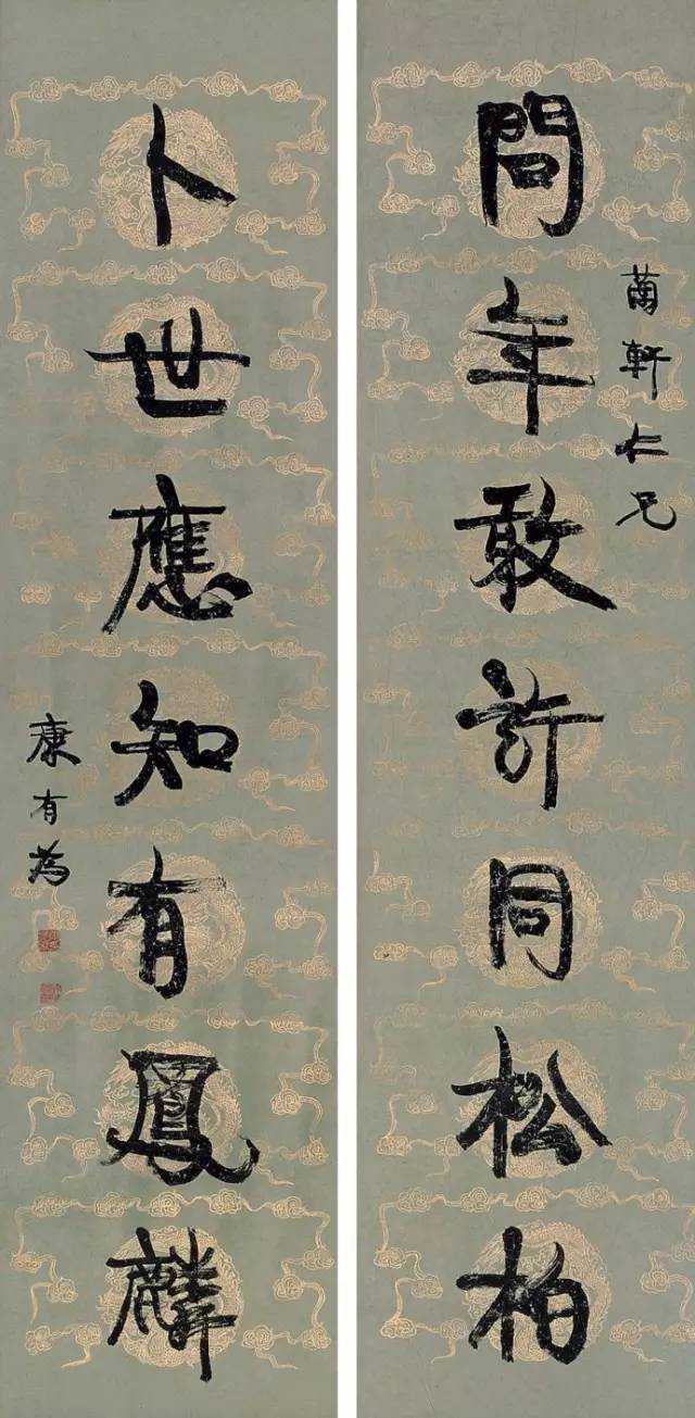 康有为出身于士宦家庭,乃广东望族,世代为儒,以理学传家。近代著名政治家、思想家、社会改革家、书法家和学者,他信奉孔子的儒家学说,并致力于将儒家学说改造为可以适应现代社会的国教,曾担任孔教会会长。主要著作有《康子篇》、《新学伪经考》。书法论著有《广艺舟双楫》,而立之年已经完成。