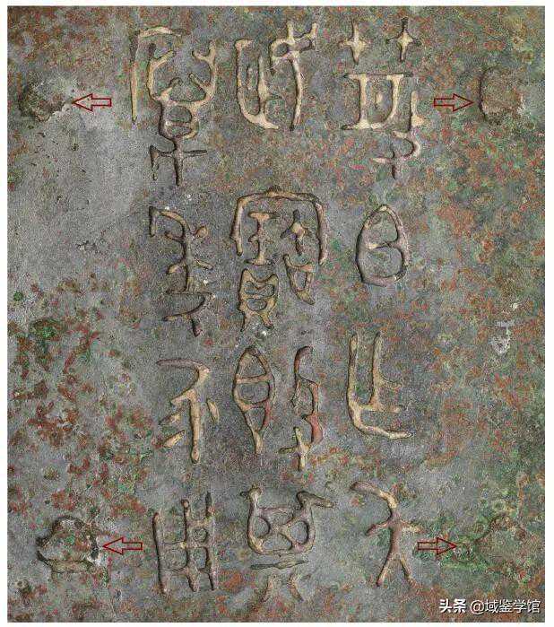 虽然垫片位置相较于范线不是绝对固定的,但发现垫片比较容易,因为垫片与器物本身的青铜材料不尽一致,导致出土皮壳、锈蚀与器物本体差异比较明显。