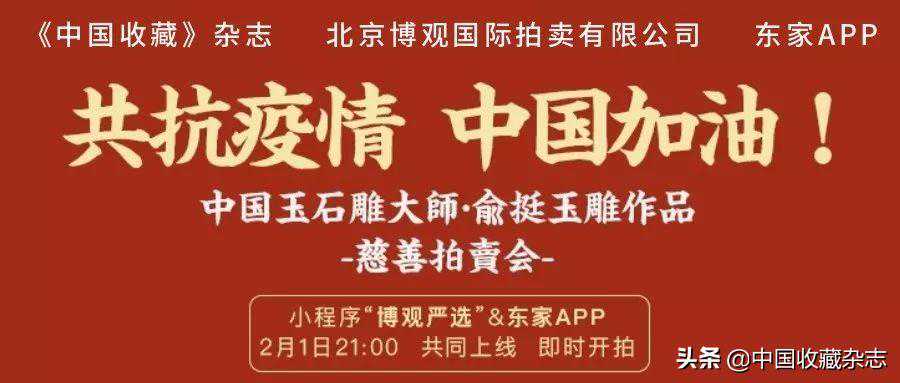 一方有难,八方援手。疫情紧紧牵动着全国人民的心!而身为社会公众力量的重要一员,收藏拍卖界同样心系疫区。2月1日晚9时,“共抗疫情、中国加油!——中国玉石雕刻大师俞挺玉雕作品慈善拍卖会”正式于网络平台博观小程序“博观严选”与东家APP同时开拍。所得款项将全数捐赠给慈善基金会,助力疫区同胞共渡难关。