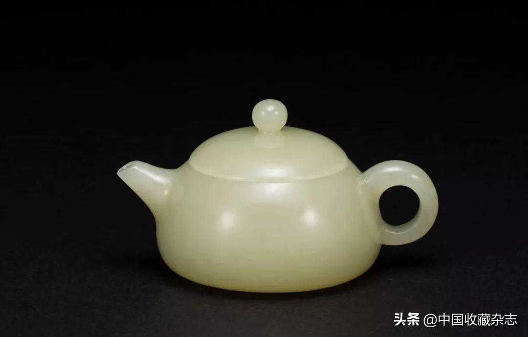 在玉雕器皿中素面作品颇为难得,因其光素无纹,全靠器型、线条取胜,并且要求原料无瑕疵杂质。此玉壶圆润饱满,线条流畅,比例协调,壶壁薄厚均一,壶盖严丝合缝,工艺精湛,兼具实用性与艺术性。
