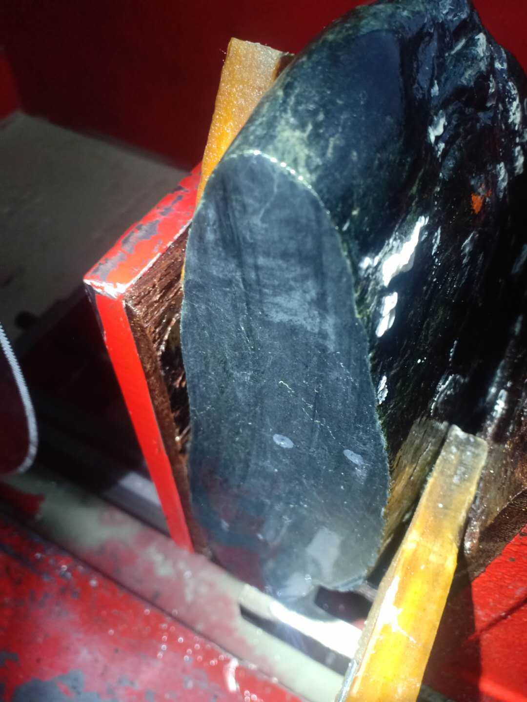 这种料子黑度好,漆黑。一般这种料子表面看着干,表皮裂多,硬度高,打灯有点玻璃质感,切开以后的结从表面现象判断的大庭相径,最能体现和田的表里如一,表面有很多看着像表皮裂的里面也一样,从图片看切的很成功是因为黑色的原因—毛裂和瑕疵不在风光下是看不清的,里面的肉质的确是不错的,但遇到里面蜘蛛网丝的细裂时就...