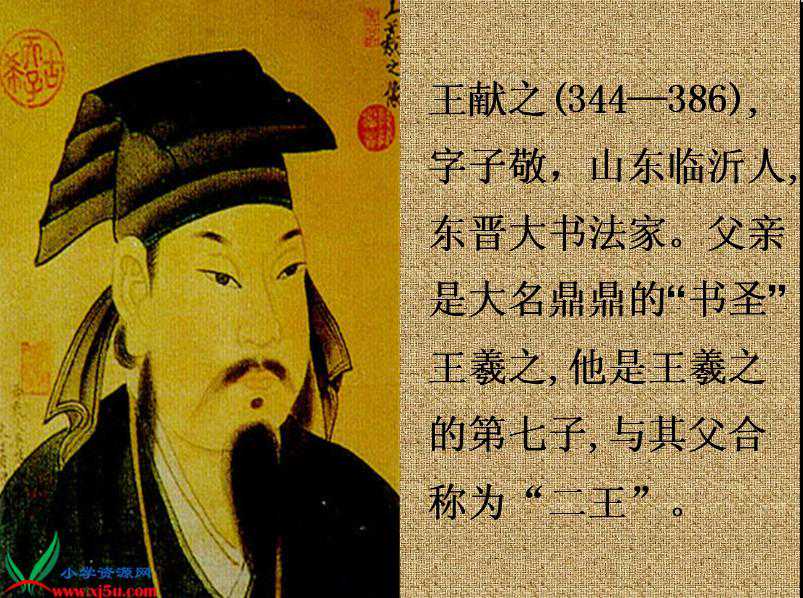 王献之(344-386),字子敬,小名官奴,王羲之第七子。由于其书艺超群,历来与王羲之并称“二王”,或尊称为“小圣”。官至中书令,人称中书令。王献之曾经担任过州主簿、秘书郎、秘书丞、长史、吴兴太守等官职;成为简文帝驸马后,又升任中书令(相当于宰相)。但政绩一般,远不如他的书名显赫。王献之生于这样的家...