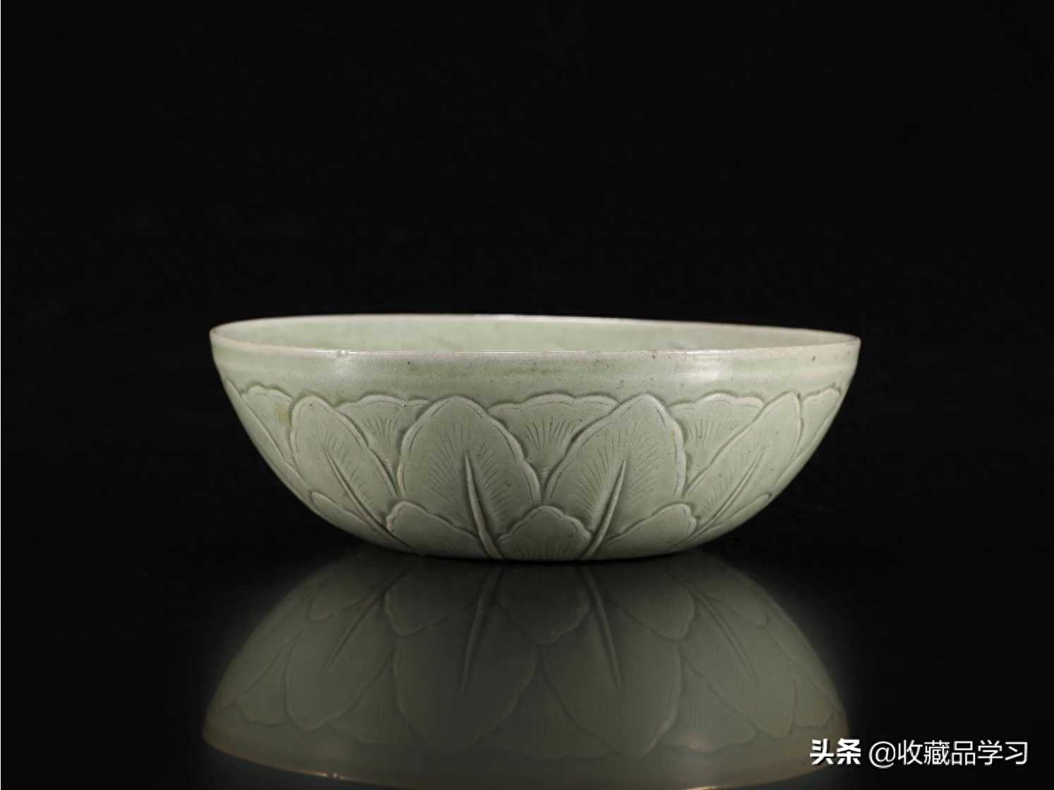 古董瓷器详细图解:五代—宋越窑青釉刻莲瓣纹钵式碗