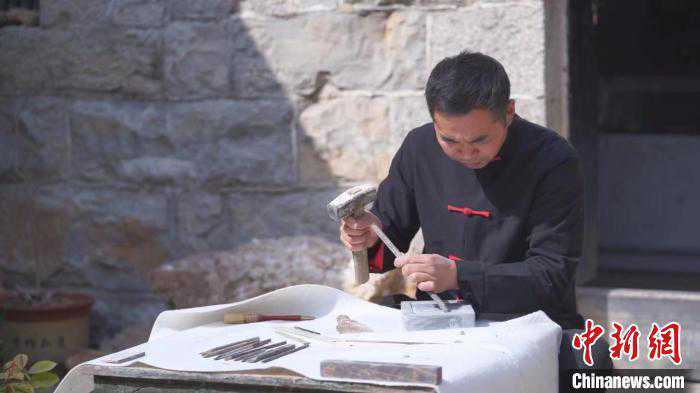 中新网菏泽(肖守祥)“一方砚台要经过选石、磨平、设计、打胚、粗雕、细刻、修饰、抛光、烤蜡、刻砚铭等十道工序,环环相扣缺一不可。选石是基础,好料出好砚,石质花纹层次、色彩、形状、厚度都要综合考虑。”12月3日,山东菏泽巨野县核桃园镇前王庄村石雕达人徐永昌在自己的工作室里手握刻刀,在一块石材上镌刻一方“...