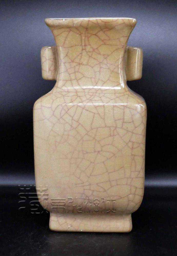 罕见的《南宋官窑米黄釉贯耳方瓶》鉴赏