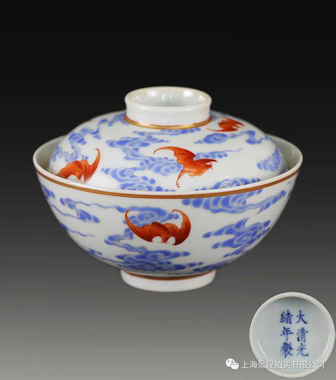 大家久等啦~本期小编将和各位一同分享部分瓷器杂项佳作,以及瓷器的保养方法。(文章展现的所有内容均属上海景晟拍卖)瓷器珍玩清光绪蓝料红彩云蝠纹盖碗说明:“大清光绪年制”六字二行楷书款,光绪本朝。此对盖杯由盖、杯组成。盖中圈钮高起,杯体侈口,斜腹,圈足,底部“大清光绪年制”六字二行青花楷书款。盖、杯均饰...