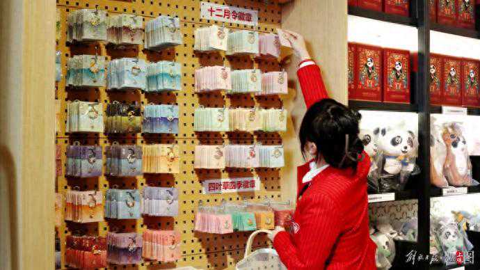 11月9日,包盈忙着为进博会6周年文创新品补货。进博会开幕以来,国展文创馆人头攒动,高峰期还要限流,每个来四叶草的人都想选几款心仪的进博文创送给客户、朋友和家人,更有收藏爱好者每年都要来打卡。馆内人们精心挑选心仪的六周年文创新品。馆外,有序排队,平均等候时间20分钟左右。上海工程技术大学大四学生包盈...