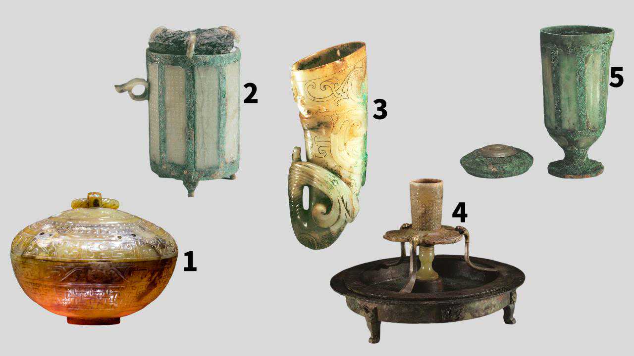 每逢过年一定要摆上桌的水果是____喜事多多、好事连连势不可挡、事事如意……没错!就是那个会让你好“柿”发生的柿子呀三个看点,带你认识和“柿”有关的玉盒01嚯,原来是南越文王赵眜爱的玉盒啊!要说汉代玉器收藏哪家强?南越文王赵眜必须申请出战△图1至5分别是:玉盒、铜框玉卮、角形玉杯、铜承盘高足玉杯、铜...
