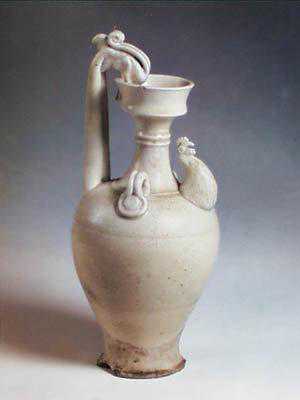 隋代青瓷继承了南北朝时期的造型而有所变化,创制了许多新的器型。壶一般分为带流和无流两种:带流者以鸡头作流,无流者都为盘口,一般习惯上称之为“鸡头壶”和“盘口壶”。鸡头壶由两晋到唐沿用的时间很久。其造型为洗口,以鸡头作流,肩部贴附双系。其演变趋势为鸡头出小到大,壶身中矮小到瘦长,系的形式由条状系到桥形...