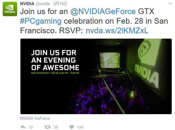 英伟达将于2月28日召开发布会发布1080Ti?