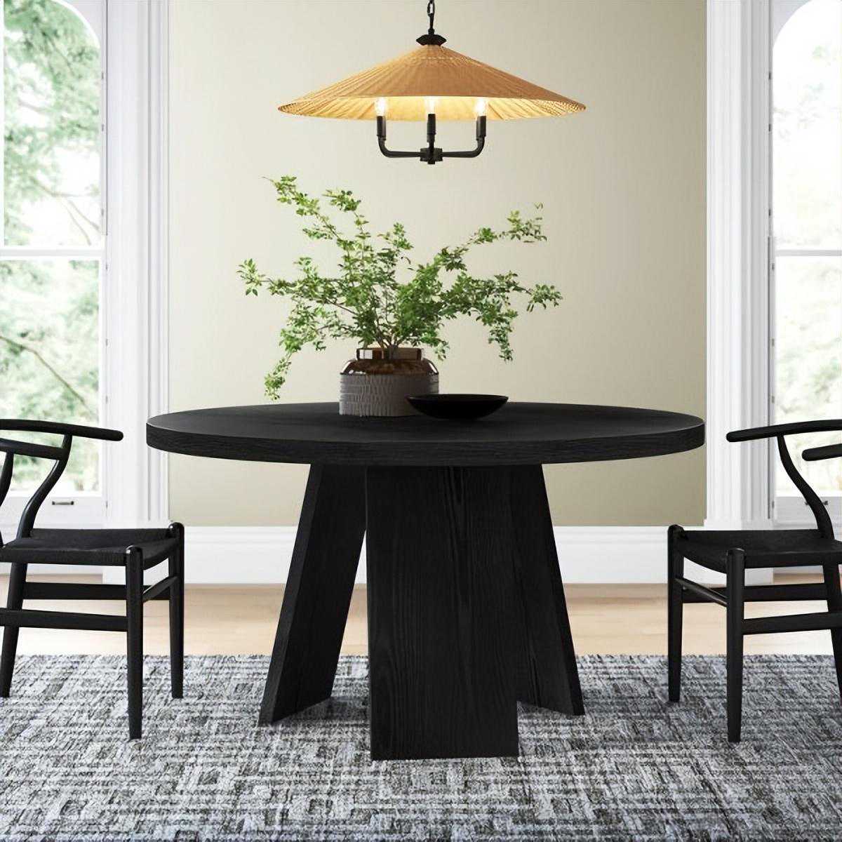 圆形黑色厨房桌子:这款时尚实用的厨房餐桌宽39英寸,尺寸适中,适合休闲使用。这件单品可舒适地容纳四人,而稳定的张开底座确保稳定性,以平易近人的预算吸引家庭友好。现代黑色饰面可轻松与任何主题协调。木制黑色圆形厨房桌子:厚实的矩形面板使这张圆形厨房桌子具有特别引人注目的轮廓,每个表面都装饰着丰富的木纹图...