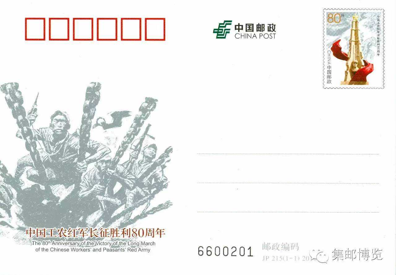 《中国工农红军长征胜利80周年》纪念邮资明信片中国邮政集团公司关于发行《中国工农红军长征胜利80周年》纪念邮资明信片的通告中国邮政定于2016年5月13日发行《中国工农红军长征胜利80周年》纪念邮资明信片1套1枚。详情如下:编号:JP215图序:(1-1)图名:中国工农红军长征胜利80周年明信片邮票...