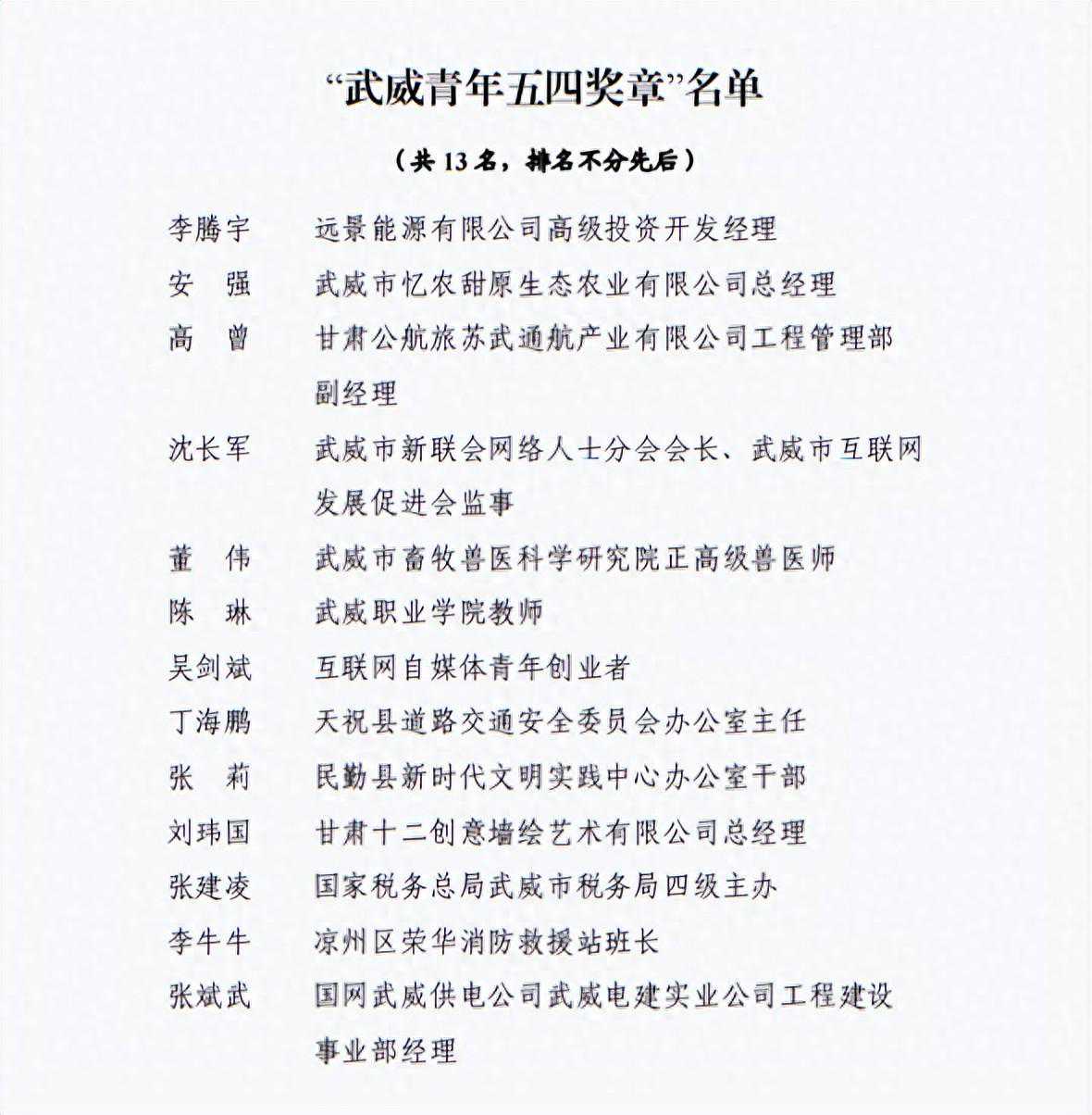 关于“武威青年五四奖章”“新时代武威好青年”“武威市两红两优”拟通报表扬对象的公示