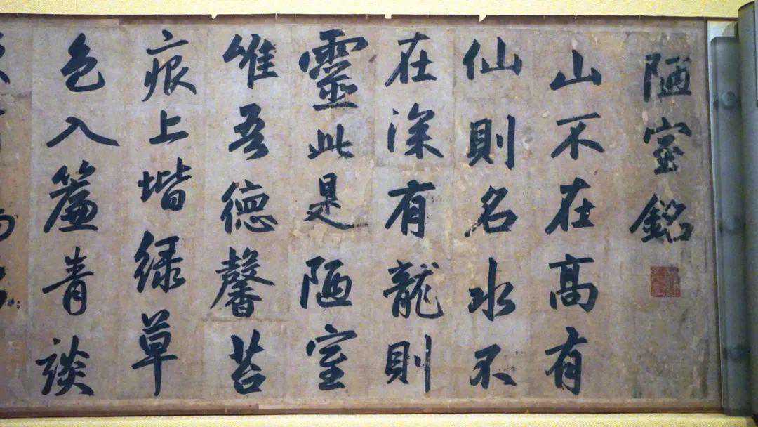 接着讲《绘冠南天——粤藏宋元书画特展》初见的元代书画。广东省博物馆一次拿出了四件赵孟頫,虽然真伪掺杂,也算是个小小专题展了。今年是赵孟頫逝世700周年,日本人年初办了个纪念特展,中国似乎没有特别重大的纪念展,而距离故宫的赵孟頫大展也已经过去五年了,粤博的这个版块算是个小小纪念吧。元,赵孟頫《行书陋室...