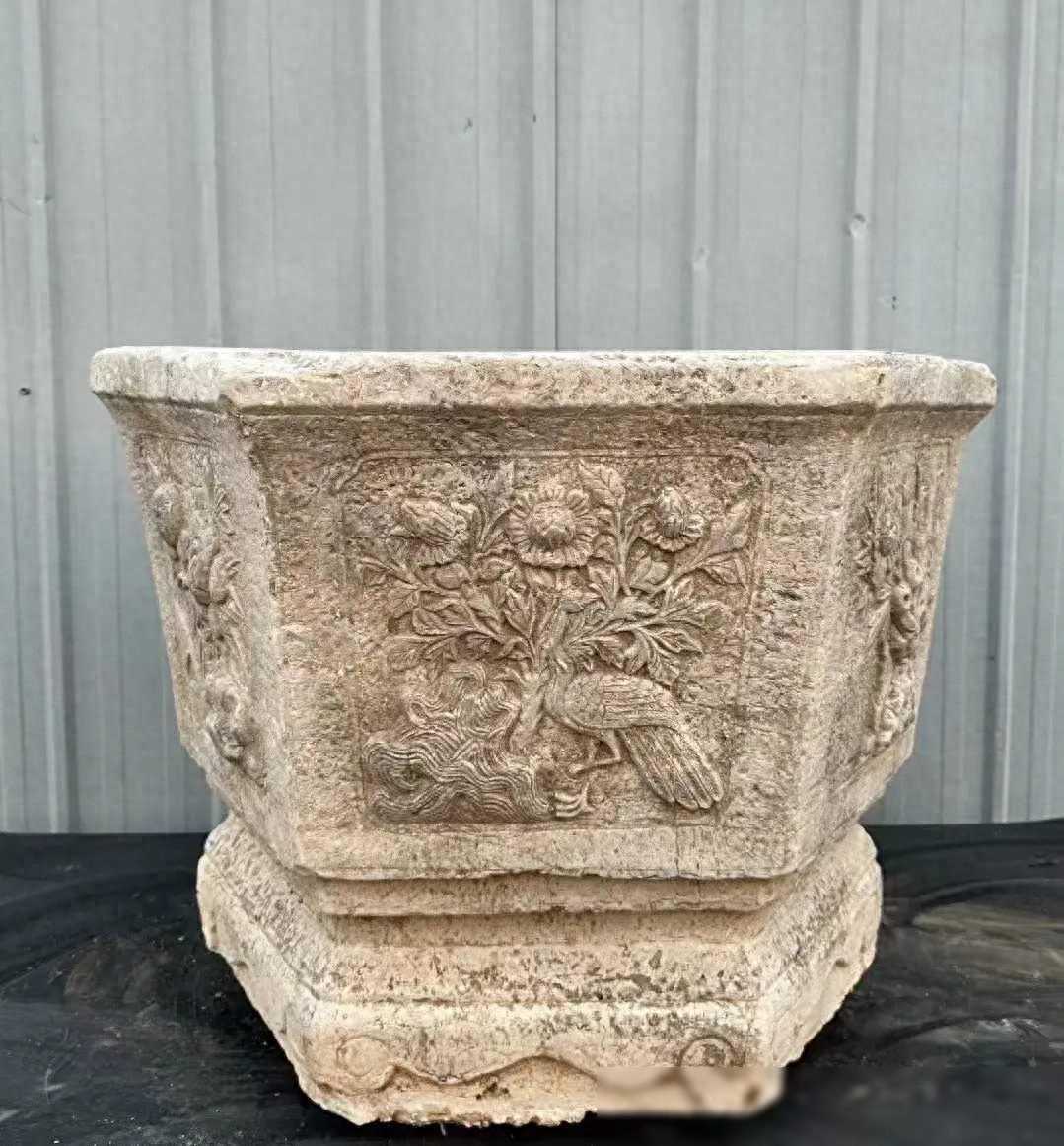 明代青石六棱盆