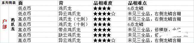 备注1:户部的品相难点户部乙巳、丙午、丁未、戊申、己酉5个年份的铜元,品相难点在龙鼻子的清晰程度,换言之,部分龙头打制偏浅。备注2:无柱丁未十文、丁未二文前几年市场上出现了一大批赝品无柱丁未与丁未二文铜元,目前不少已入盒。包浆做的极好,文字略差,部分边道有削边迹象。类似的还有己酉二十文大头龙与鸡爪龙...