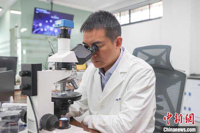 题:探访景德镇古陶瓷基因库:聆听古瓷片的“文明回响”一块碎瓷片,或埋于土中,或沉于水底……但在景德镇古陶瓷基因库内,却可以通过检测与分析,解析古代陶瓷文明的起源、发展与变迁,聆听来自古瓷片的“文明回响”。图为2023年6月19日,景德镇古陶瓷基因库实验室内,景德镇御窑博物院院长翁彦俊使用电子显微镜在...