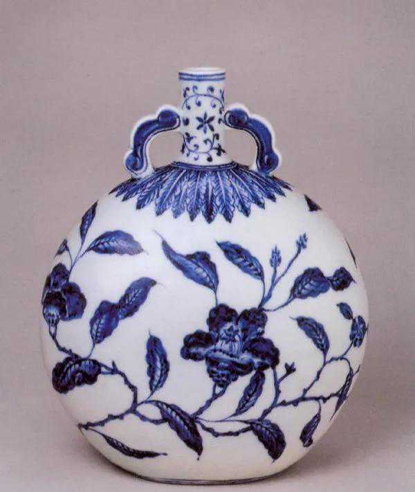 青花折枝花纹背壶壶直口,细颈,腹扁圆莆,平底。颈、肩处安对称如意形耳。通体青花纹饰,颈饰缠枝花纹,肩饰蕉叶纹,扁圆腹两面饰折枝花纹。此器形制源自阿拉伯铜器,器形端庄而稳定。纹饰简洁,以写生茶花为主体纹饰。青花夔龙纹罐罐直口,鼓腹,平底。通体青花纹饰,颈饰如意云头纹,肩饰朵花及勾云纹,腹饰夔龙衔花纹,...