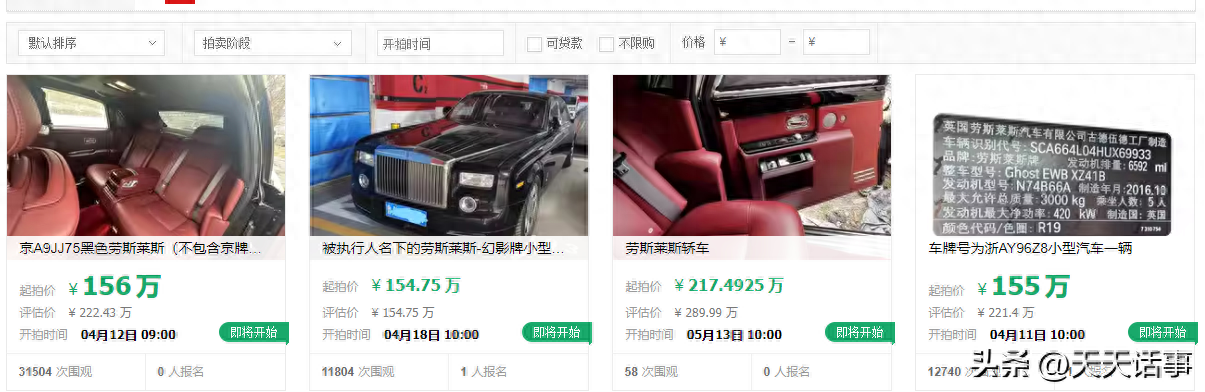 四辆劳斯莱斯豪车被拍卖,最低才154万起,捡漏好机会