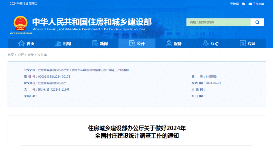 2024年全国村庄建设统计调查工作开始!