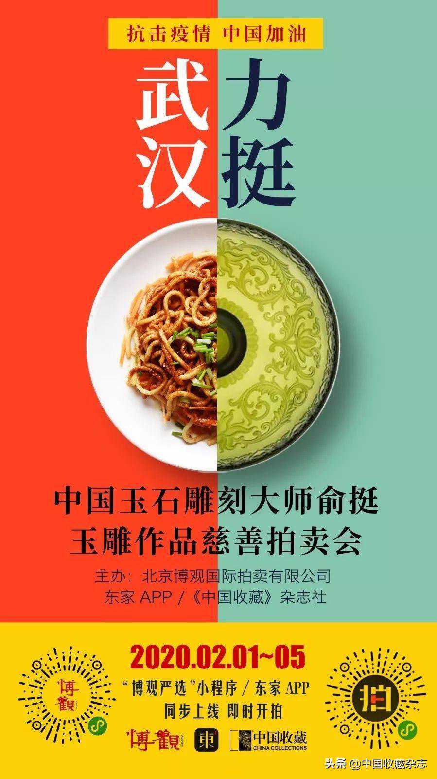 “武汉加油!中国加油!”——这恐怕是近段时间以来最鼓舞人心的一句话。一方有难,八方援手。疫情紧紧牵动着全国人民的心!而身为社会公众力量的重要一员,收藏拍卖界同样心系疫区。2月1日晚9时,“共抗疫情、中国加油!——中国玉石雕刻大师俞挺玉雕作品慈善拍卖会”正式于网络平台博观小程序“博观严选”与东家APP...