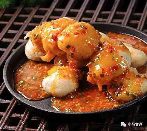 铁板泰汁茄夹1.把茄子切成夹刀片,逐一夹入肉馅后,挂脆浆糊下入四成热的油锅,炸至外脆内熟时捞出来,放烧热的铁板上。2.另取净锅放少许的油,先下青红椒粒和洋葱粒炒香,再放泰国鸡酱、蒜蓉辣椒酱和美国辣椒仔(三者的比例为5︰1︰1)炒几下,掺少量清水,加盐调味并勾芡后,撒入葱花便起锅,舀在茄夹上即成。铁板...